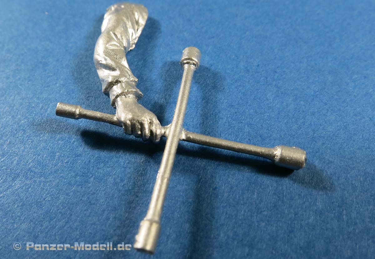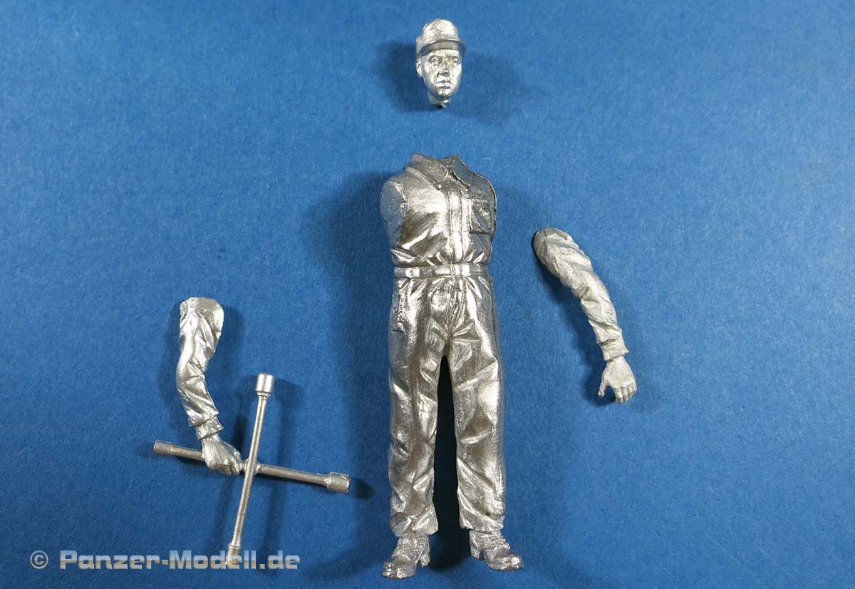 In der Packung finden wir insgesamt 4 Metallteile zum Bau einer Figur, die aus dem Gesamtkörper plus zwei Armen und dem Kopf besteht. Das Radkreuz ist bereits an die rechte Hand mit angegossen.