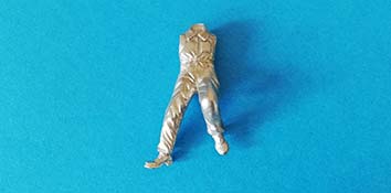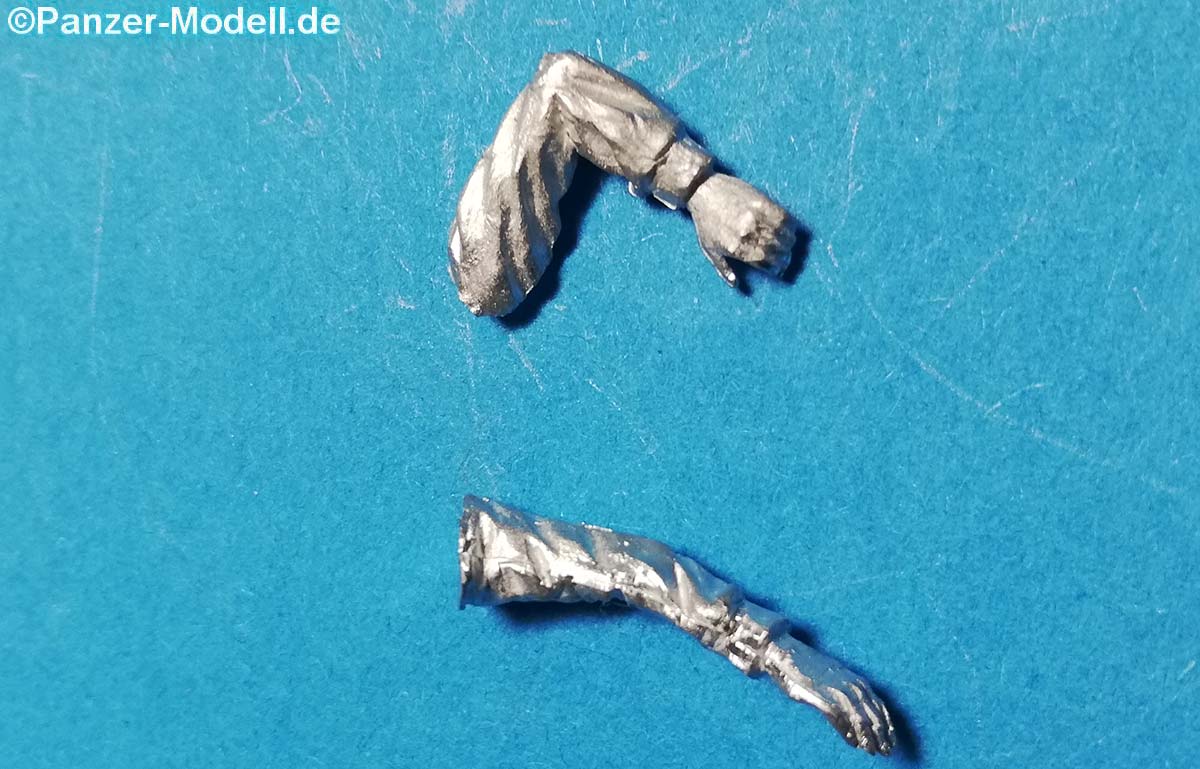 Der Körper ist mit den Beinen komplett in einem Stück gegossen, es werden nur die beiden Arme und der Kopf separat angebaut.