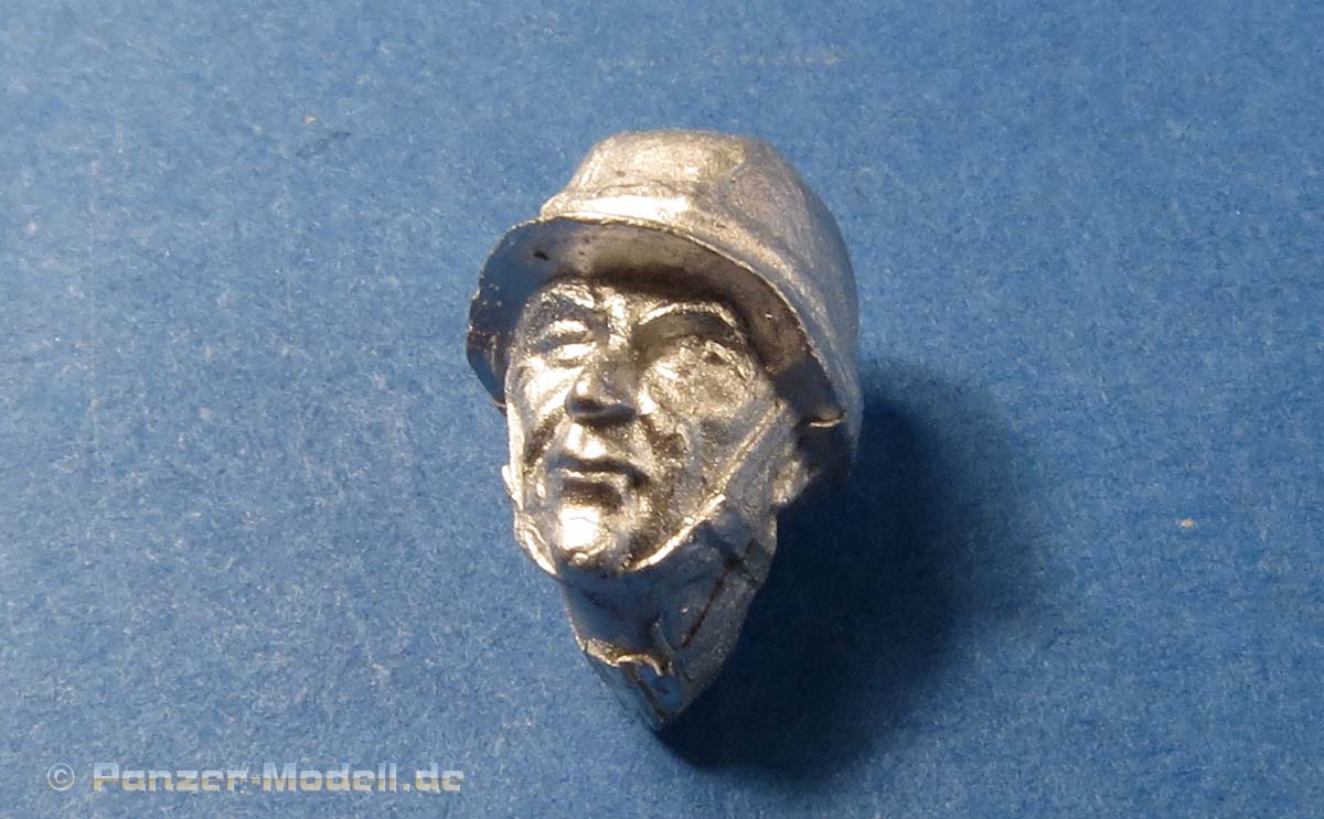 Der Kopf ist sehr gut gemacht mit realistischen Gesichtszügen und dem Helm mit Kinnriemen.