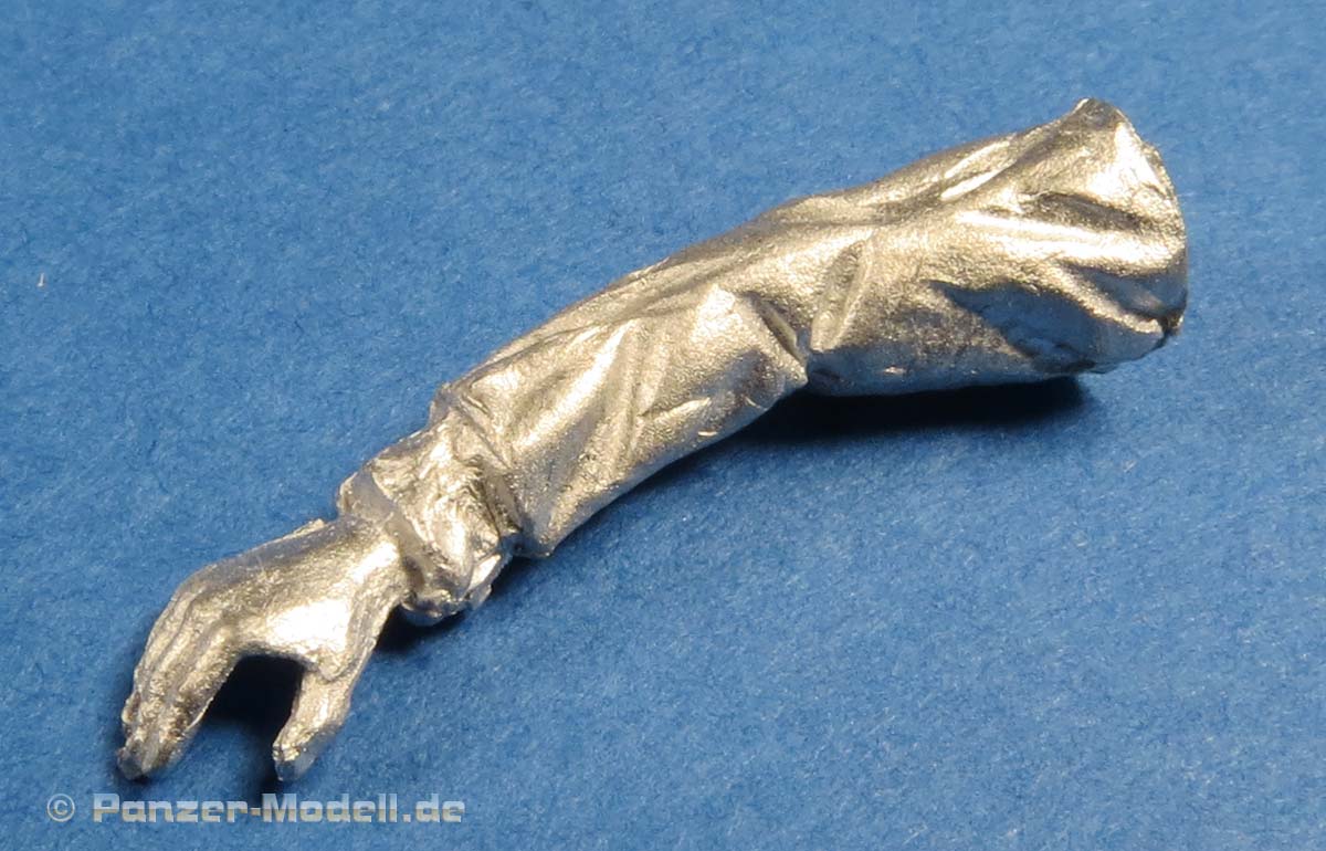 Arme und Hände sind gut und recht fein gestaltet mit entsprechendem Faltenwurf an den Ärmeln und passenden Handposen um diese der Pose entsprechend abzulegen.