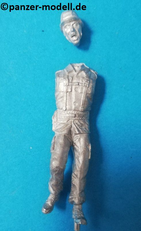 Der recht dünne Körper ist mit den Beinen komplett in einem Stück gegossen, es werden die Ausrüstung, die beiden Arme und der Kopf separat angebaut.