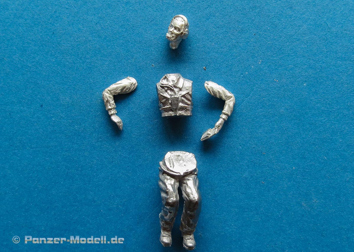 Der Faltenwurf und die Oberflächendetails wissen zu gefallen und sind recht ordentlich ausgearbeitet, wennauch metallgusstypisch stellenweise etwas soft. Auf der Brust befindet sich eine Sprechbox für die Bordverständigung mit entsprechenden Riemen umgehängt, die natürlich direkt mit angegossen sind. Der Kopf ist ganz ok gemacht mit realistischen Gesichtszügen. Natürlich ist das Sprechgeschirr mit Kopfhörern und Mikrofon auch direkt mit angegossen. Der Kopf trägt keine Kopfbedeckung - die Darstellung der Kurzhaarfrisur ist ganz ansprechend. Das Set kostet rund 9 Euro und bietet eine schöne Möglichkeit um die Fahrschulkabine mit Leben zu füllen. |