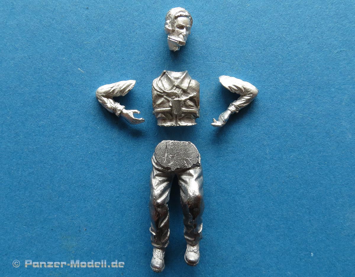 Der Faltenwurf und die Oberflächendetails wissen zu gefallen und sind recht ordentlich ausgearbeitet, wennauch metallgusstypisch stellenweise etwas soft. Auf der Brust befindet sich eine Sprechbox für die Bordverständigung mit entsprechenden Riemen umgehängt, die natürlich direkt mit angegossen sind. Der Kopf ist gut gemacht mit realistischen Gesichtszügen. Natürlich ist das Sprechgeschirr mit Kopfhörern und Mikrofon auch direkt mit angegossen. Der Kopf trägt keine Kopfbedeckung - die Darstellung der Frisur ist ganz ansprechend. Das Set kostet rund 9 Euro und bietet eine schöne Möglichkeit um die Fahrschulkabine mit Leben zu füllen. |