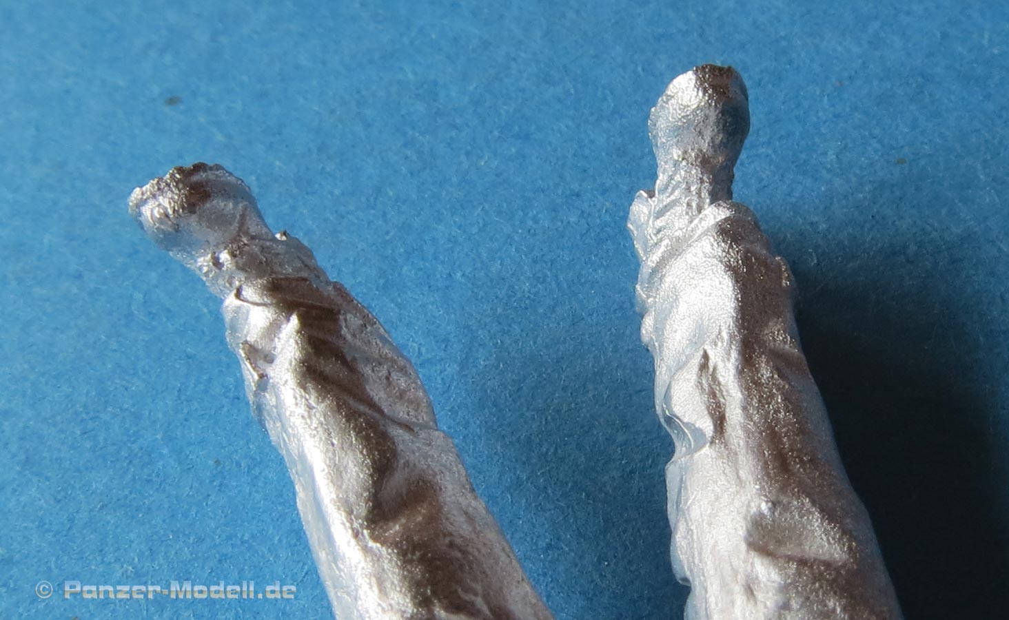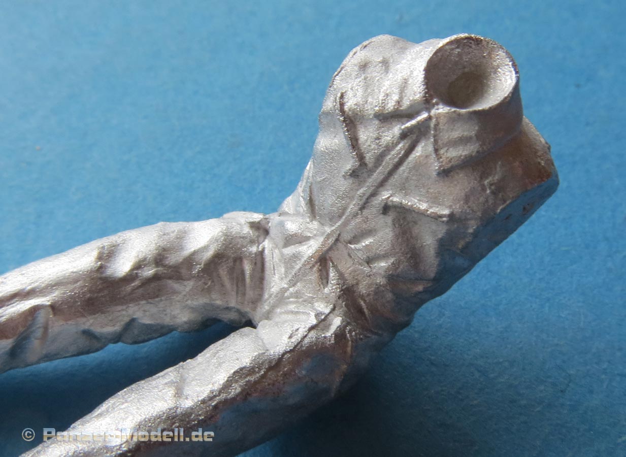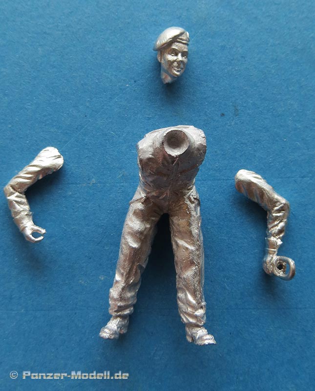 Der Faltenwurf und die Oberflächendetails der Figur wissen wie gewohnt zu gefallen und sind recht ordentlich ausgearbeitet, wennauch metallgusstypisch stellenweise etwas soft. Auch wirkt der Metallguss bei extremer Nahbetrachtung recht rauh - aber das sollte sich mit der Bemalung und normalem Betrachtungsabstand wieder geben. Der Kopf ist wie gewohnt schön dargestellt mit passenden und realistischen Gesichtszüge. Als Kopfbedeckung wird ein entsprechend gut gestaltetes Barett getragen. Das Set kostet rund 9 Euro und bietet eine nette Figur um einem Fahrzeug oder einer Bergeszene ein wenig Leben einzuhauchen. |
