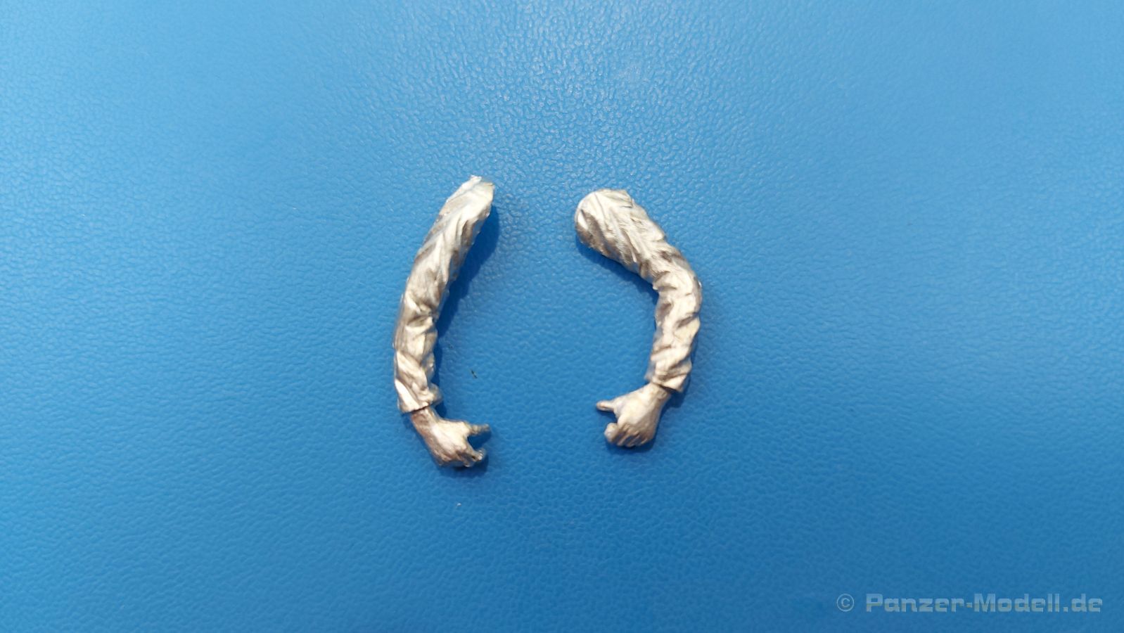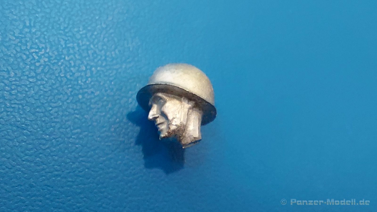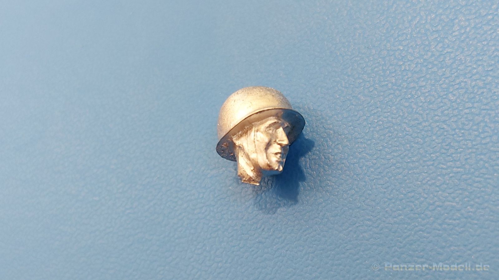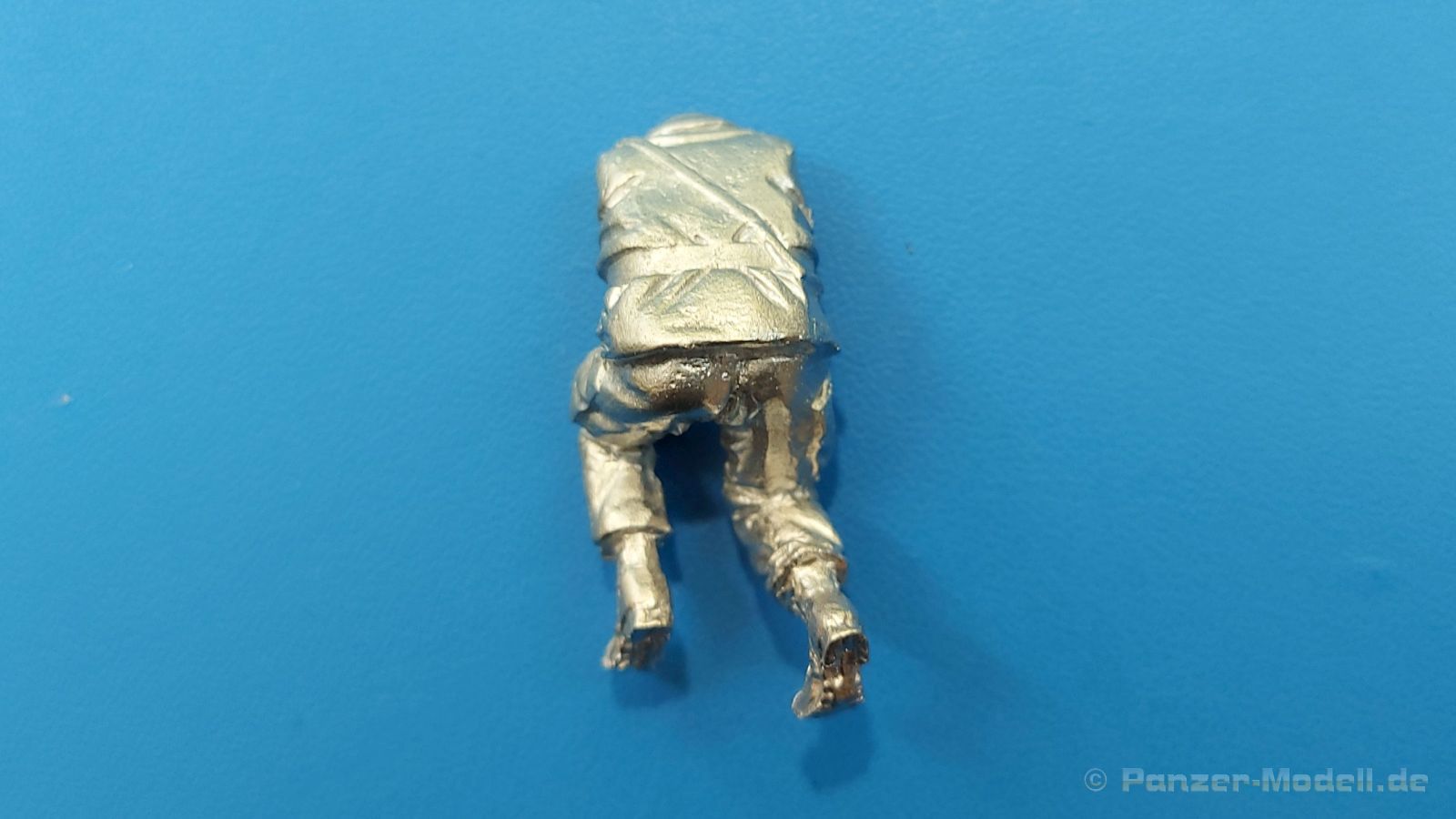 Bei dieser Figur haben wir den Richtschützen vor uns, der vornübergebeugt mit angewinkelten Beinen die Abstützplatte des Werfers (Teile D6, D10 und D26 aus dem Hobby Boss Bausatz) in den Stützstempel einhängt. DOLP gibt die Funktion des Soldaten im Titel vor, aber da sich die Uniformen nicht unterschieden, entscheidet Ihr das selbst mittels entsprechender Bemalung der Schulterklappen. (In unseren AUSGEPACKT werdet Ihr auch die anderen Besatzungsmitglieder finden.) Die Figur besteht aus dem Körper, also Oberkörper inkl. Beinen, dem Kopf, den Armen und einer ABC-Tasche. Der Soldat trägt einen Kampfanzug M60, bestehend aus Hosen mit seitlichen Oberschenkeltaschen und einer Jacke mit zwei großen Brusttaschen. Er trägt ein Koppel über der Jacke. Der Tragegurt der ABC-Tasche ist angegossen und geht von der rechten Schulter zur linken Hüfte. Er scheint über das Koppel zu gehen, was wir Soldaten gern vermieden haben, weil sonst die Tasche beim Laufen immer hin- und hergeschlagen ist. Als Alternative einfach die Teile auf dem Koppel wegschleifen, dann ist man der Praxis näher. An den Füßen trägt die zu dieser Zeit geläufigen Kampfstiefel. Die Schnürung der Stiefel ist gut gelungen und die Stiefelsohlen weisen ein Profil auf. Die Figur wird auf dem Ballen stehen, die Fersen angehoben. Beide Arme sind so gestaltet, dass der Soldat die Abstützplatte mit beiden Händen halten kann. Die Bekleidung zeigt einen glaubhaften Faltenwurf. Auf dem Kopf ist der Stahlhelm gleich angegossen. Die Struktur und Form des Helmes gefallen mir. Noch schöner wäre es gewesen, wenn der innere Rand ausgehöhlt wäre. Vermutlich ließ sich das gusstechnisch nicht anders lösen. Der Kinnriemen ist deutlich zu sehen und geschlossen. Die Gesichtszüge sind deutlich und ansprechend gestaltet. Die ABC-Tasche zeigt den eingeschlagenen Rand mit der Schnellöffnerlasche. Die Unterseite hätte aber etwas keilförmiger sein können. Insgesamt weist die Oberfläche eine leicht raue Struktur auf, die Metallguss so eigen ist, aber nach entsprechender Bemalung wird das nicht mehr auffallen. Der Faltenwurf und die Oberflächendetails sind recht schön. Hier und da findet sich feiner Gussgrat, der sich leicht entfernen lässt. Die Figur ist für ca. 9 EUR auf dem deutschen Markt erhältlich. |