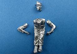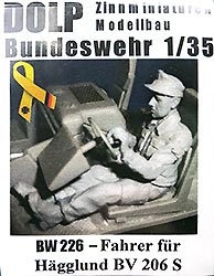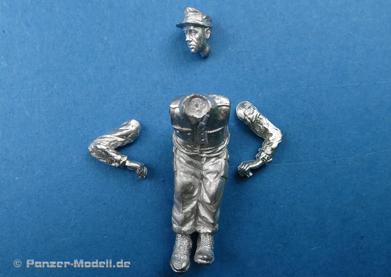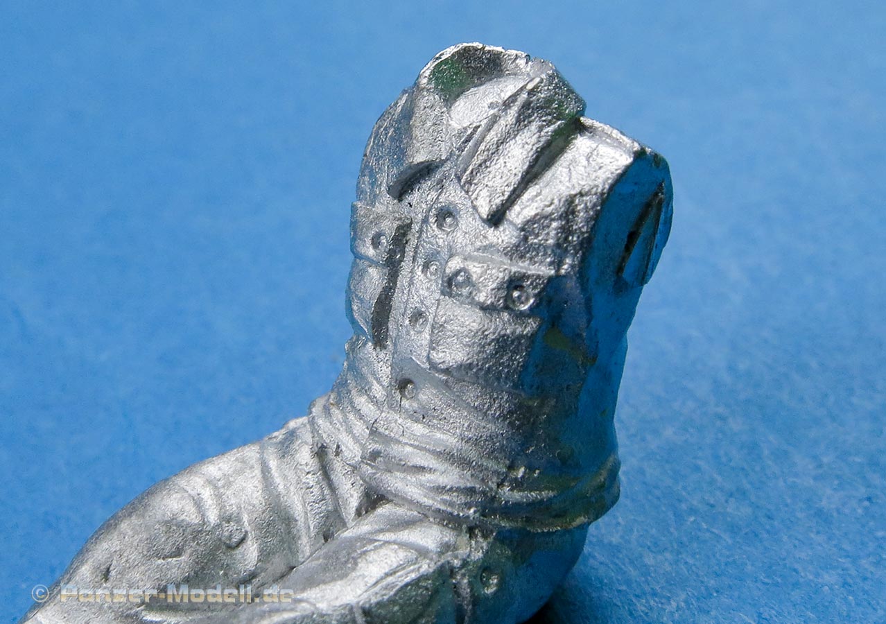 In der Packung finden wir insgesamt 4 Metallteile zum Bau einer Vollfigur, die aus dem Körper, zwei Armen und dem Kopf zusammenzubauen ist. Der Faltenwurf und die Oberflächendetails der Figuren wissen wie gewohnt zu gefallen und sind recht ordentlich ausgearbeitet, wennauch metallgusstypisch stellenweise etwas soft in der Detaillierung und rau in der Oberflächenstruktur. Der Kopf ist prinzipiell mit den Gesichtszügen gut dargestellt soweit das in Metallguss eben möglich ist - über die Bemalung ist hier sicherlich mehr rauszuholen. Als Kopfbedeckung wird die Feldmütze getragen. Das Set kostet rund 9 Euro und bietet eine interessante Figur zur Besetzung eines Hägglunds. |