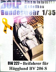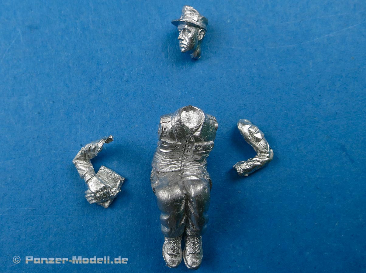 In der Packung finden wir insgesamt 4 Metallteile zum Bau einer Vollfigur, die aus dem Körper, zwei Armen und dem Kopf zusammenzubauen ist. Der Faltenwurf und die Oberflächendetails der Figuren wissen wie gewohnt zu gefallen und sind recht ordentlich ausgearbeitet, wennauch metallgusstypisch stellenweise etwas soft in der Detaillierung und rau in der Oberflächenstruktur. Der Kopf ist prinzipiell mit den Gesichtszügen gut dargestellt soweit das in Metallguss eben möglich ist - über die Bemalung ist hier sicherlich noch einiges rauszuholen. Als Kopfbedeckung wird die Feldmütze getragen. Das Set kostet rund 9 Euro und bietet eine interessante Figur zur Besetzung eines Hägglunds. |