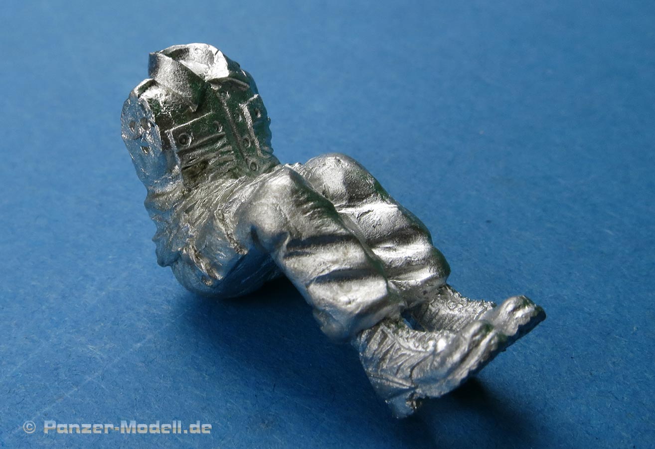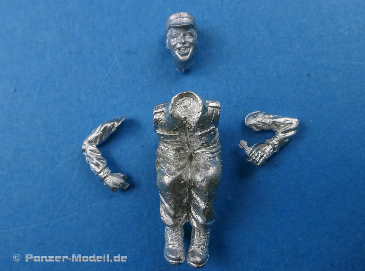 In der Packung finden wir insgesamt 4 Metallteile zum Bau einer Vollfigur, die aus dem Körper, zwei Armen und dem Kopf zusammenzubauen ist. Der Faltenwurf und die Oberflächendetails der Figuren wissen wie gewohnt zu gefallen und sind recht ordentlich ausgearbeitet, wennauch metallgusstypisch stellenweise etwas soft in der Detaillierung und rau in der Oberflächenstruktur. Der Kopf ist prinzipiell mit den Gesichtszügen und dem offenen Mund gut dargestellt soweit das in Metallguss eben möglich ist - über die Bemalung ist hier sicherlich noch einiges rauszuholen. Als Kopfbedeckung wird die Feldmütze getragen. Das Set kostet rund 9 Euro und bietet eine interessante Figur zur Besetzung eines Hägglunds. |