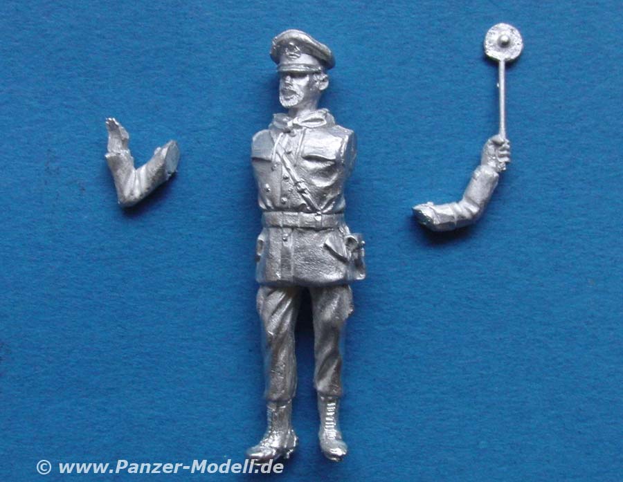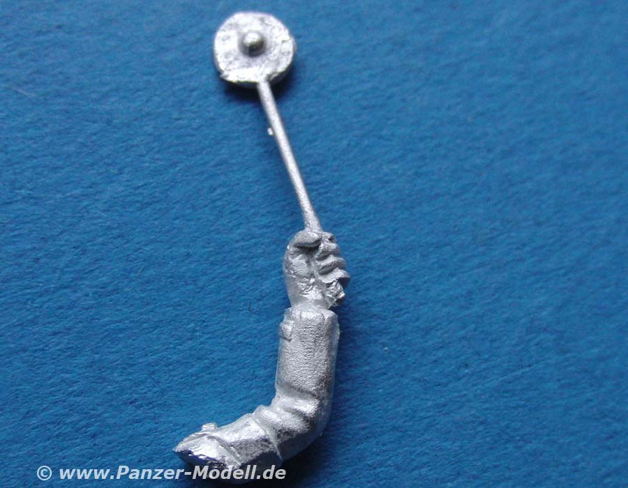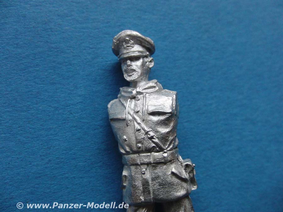 Der Guss ist gut und sauber, sobei der Rand der Kelle etwas ausgefranst ist. Ansonsten wissen die Details, insbesondere des Feldjägeranzugs mit Schirmmütze sehr zu gefallen.