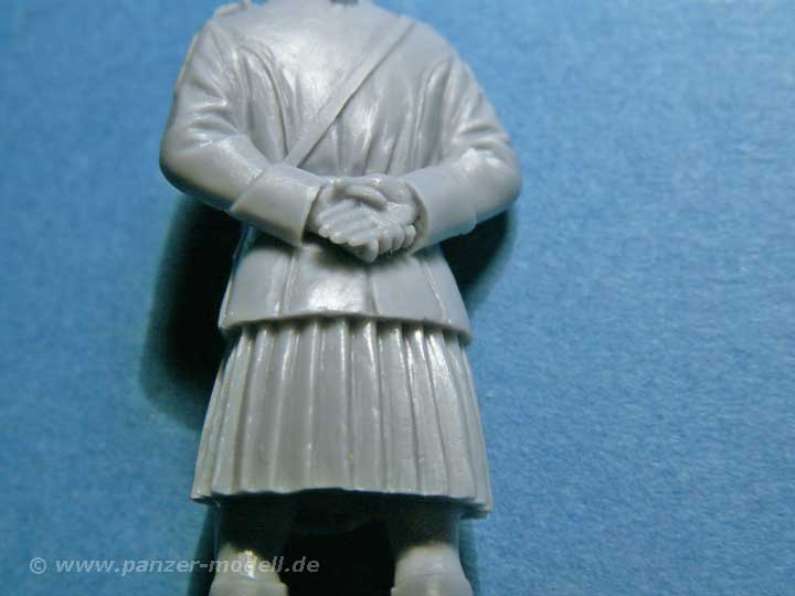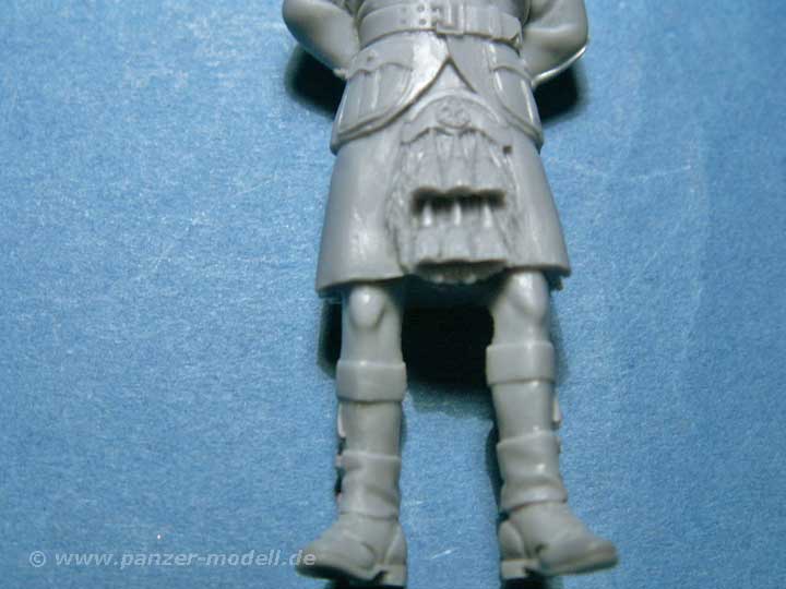 Diese Figur stellt guss und detailtechnisch wirklich die allerbeste Qualität dar. Der Kilt mit dem Faltenwurf und den wahnsinnigen Details auf der Vorderseite, allgemein der Faltenwurf der Kleidung mit den Armen hinterm Rücken. Besonders die Hände sind in dieser Position gut dargestellt. Das Gesicht ist keines der 08/15 Gesichter und etwas verkniffen - hervorragend.