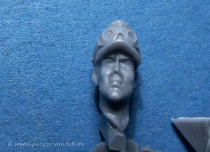 Was hier in Resin gegossen wurde kann sich wahrlich sehen lassen und mit den besten Figuren messen. Neben dem sehr guten Faltenwurf der Kleidung, gibt es feingliedrige Finger, exzellent dargestellte kurze Hosen mit Unterschnitt und entsprechenden nackten Beinen. Auch der Kopf ist mit Gesicht und der Mütze mit Staubschutzbrille hervorragend gestaltet.