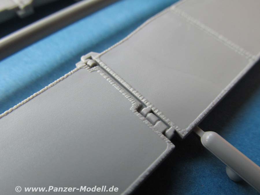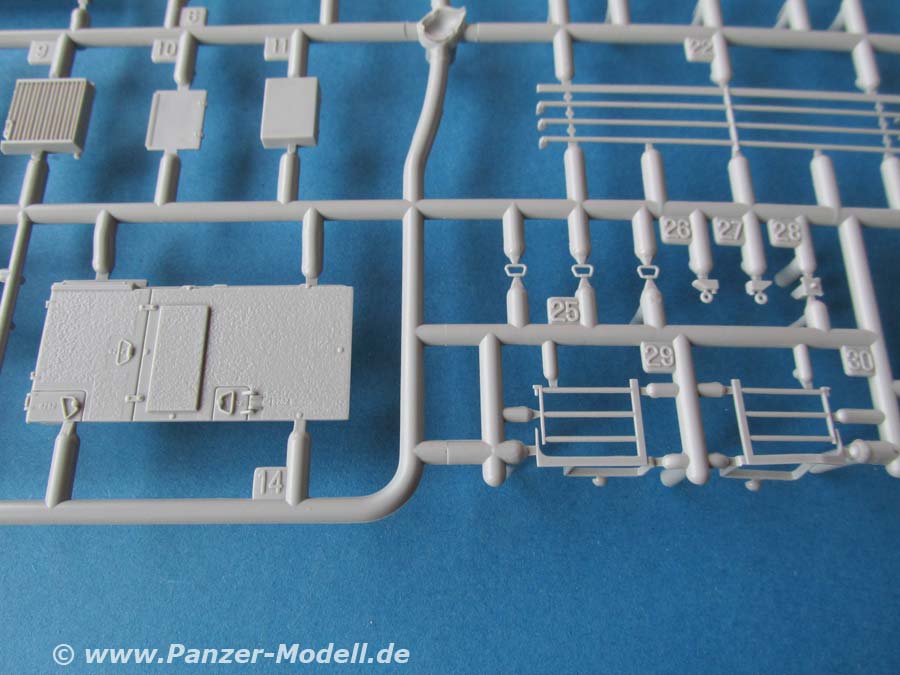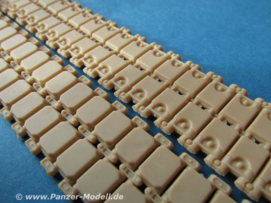 Die Vinylketten sehen ebenfalls sehr gut aus - einzige Knackpunkt hier ist, dass die Führungszähne einzeln von einem Spritzling abgetrennt und aufgeklebt werden müssen - zwar mühselig, sieht später aber sicher toll aus.