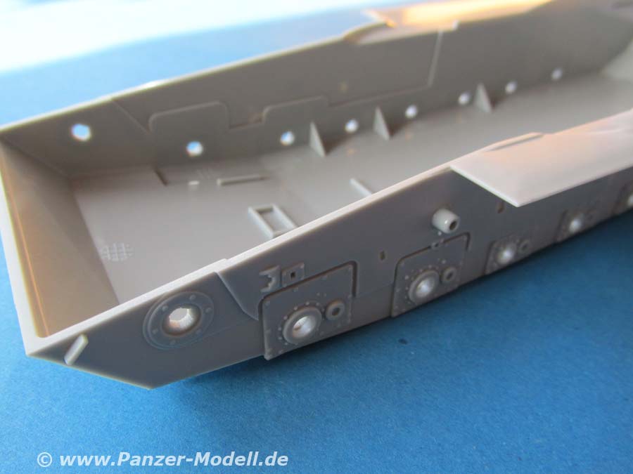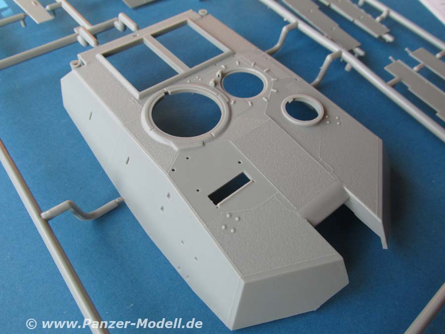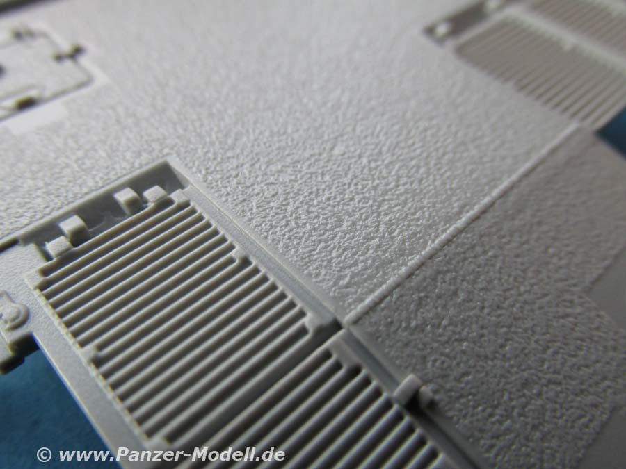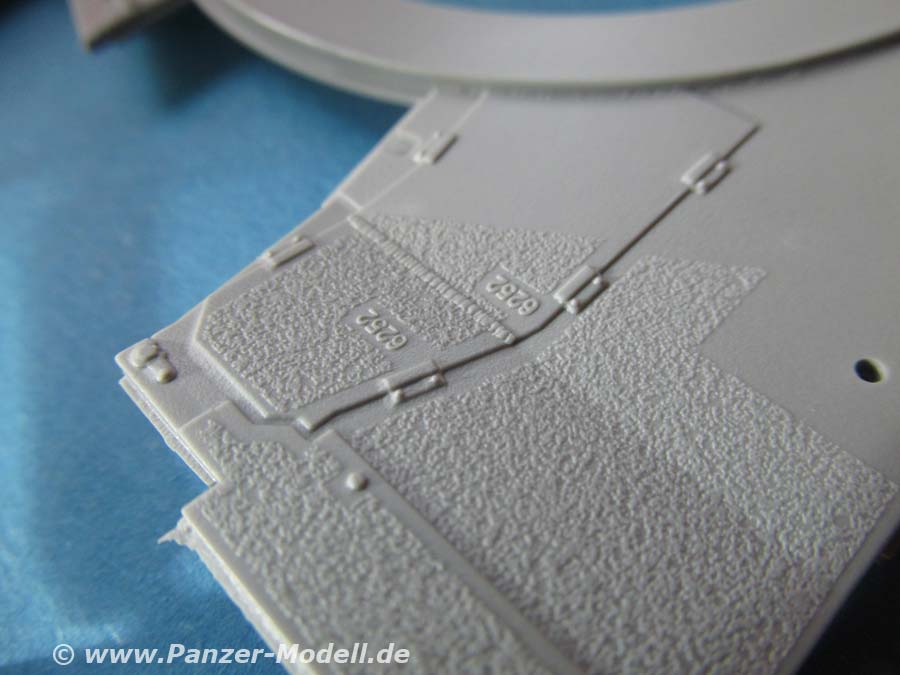 Das Basismodell ist wie gesagt bereits bekannt und schon einen Tag älter. Die Qualität der Teile und deren Detailierung ist extrem gut. Was ich hier an Oberflächenstrukturen sehe - ganz besonders die Antirutschbeschichtungen und Schweißnähte an Oberwanne und Turm ... sogar mit winzigen aufgeprägten Zahlen ... das ist der Hammer.