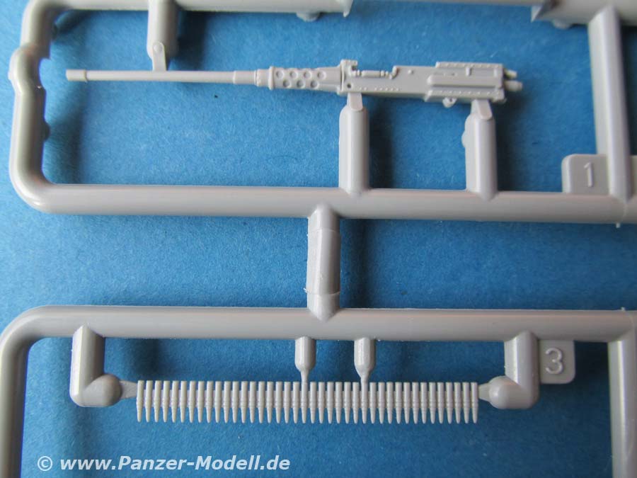 Natürlich sind alle speziellen Teile zur Darstellung der A2 SEP Version enthalten und nicht zu vergessen die CROWS II Waffenstation, die dieses spezielle Version ausmacht. Die Brownings sind in Plastik gespritzt und sehen dafür recht ordentlich aus.