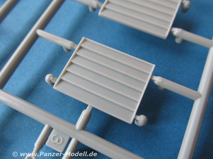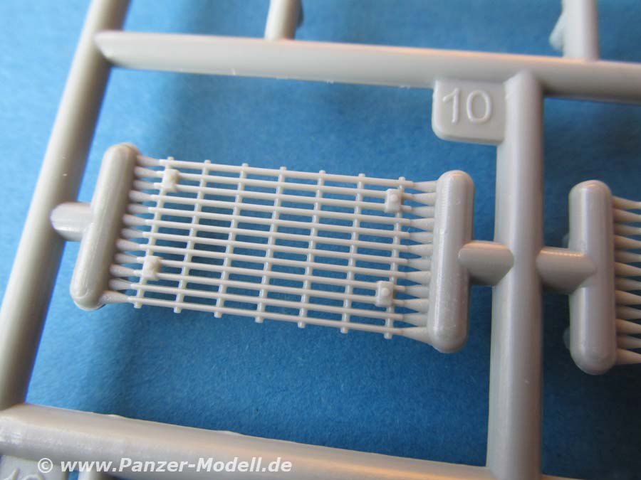 Weiter im Reigen der tollen Teile ... die Lüftergitter am Motorheck sind zwar aus Plastik, aber dennoch fein und man kann hindurchsehen! Das Motordeck kann wie im Original mit allen 5 Klappen offen dargestellt werden, die Schürzen haben verschiedene Stärken und sind vorn beweglich, genau wie am Original je nach Position und die Kommandantenkuppel ist extrem detailiert!