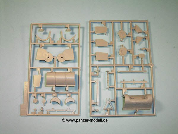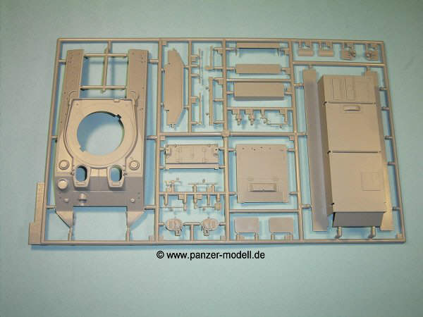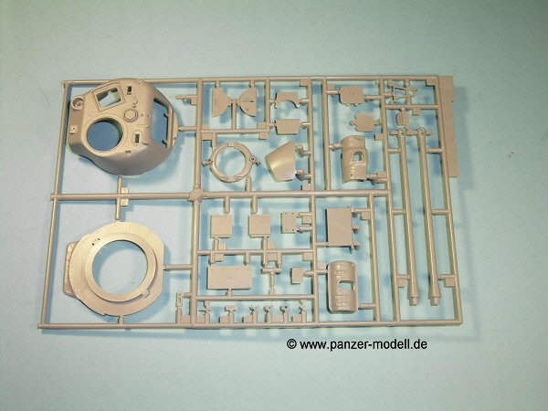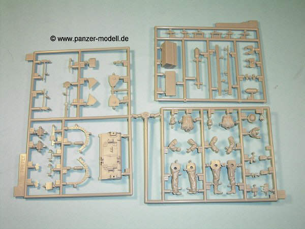 Insgesamt ist die Box mit nicht weniger als 13 Spritzlingen und einer kleinen PE Platine prall gefüllt. Die Spritzlinge sind in hellem Grau gehalten und weisen weder Grat noch nennenswerten Verzug auf. Die Detaillierung und Oberflächendetails sind sehr fein herausgearbeitet, besonders die rauhe Stahloberfläche des Sherman ist sehr schön wiedergegeben.