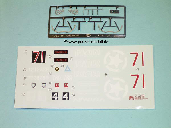 Der sauber gedruckte Decalbogen erlaubt den Bau von zwei Fireflies: "Carole" der 13/18th Hussars, 27th Armoured Brigade und "Allakeefer" der 4th County of London Yeomanry - beide Fahrzeuge stammen aus der Normandie 1944, doch dazu am Ende des Ausgepackts mehr.
