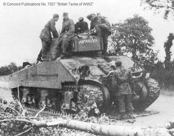 Der "Allakeefer" geistert oftmals als Zeichnung durch diverse Bücher. Am bekanntesten ist er aber wohl durch das Foto in Concord Band 7027 "British Tanks of Wordwar 2 (1)" von David Fletcher. "Allakeefer" fiel bei den berühmten Kämpfen um Villers-Bocage den Tigern der 501. s.SS-Pz.Abt. zum Opfer. Das Fahrzeug scheint zumindest die vordere Staukiste am Bug nicht zu haben. Dafür ist "Allakeefer" aber mit Seitenschürzen ausgerüstet, welche dem Modell leider nicht beiliegen.