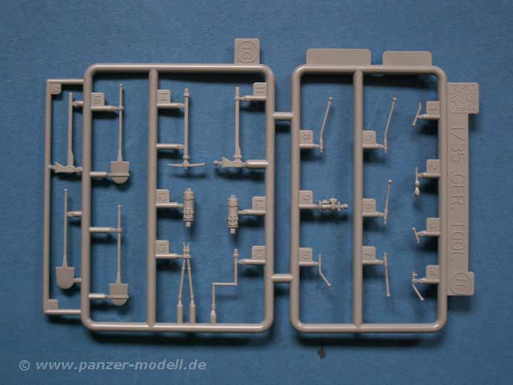 Das ganze Fahrwerk ist schön gestaltet, allerdings muss man hier für Lenkeinscglag wieder selber das Skalpell ansetzen. Der Innenraum ist hervorragend dargestellt mit beiden Fahrerplätzen und sehr schönen Details und dem entsprechenden Aufbau und Zubehör für die 7,5cm PaK. Bei der PaK ist alles enthalten, was man von den bisherigen PaK Bausätzen bereits gewohnt ist - vom Alurohr, detailierter Aufhängung und Verschluss bis zur Auswahl von 3 Mündungsbremsen - dazu ein schönes Set an Plastikmunition, Munitionskisten und Einzelverpackungen vom feinsten. Was mir persönlich aber fehlt sind passende Figuren für den Innenraum.