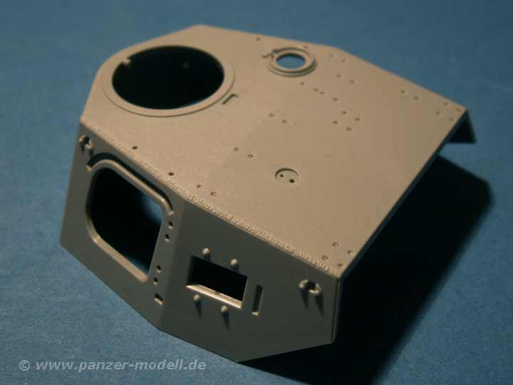 Der Turm bekommt eine ungewöhnlich ausführliche Innenausstattung, die zudem sehr detailiert ist. Dazu gehöhrt der Turmboden, komplette Waffe mit Anbauteilen, Sitze und Innendetails der Luken und Sichtblöcke und der Turmdrehkranz hat sogar die Innendetails mit Zahnkranz.