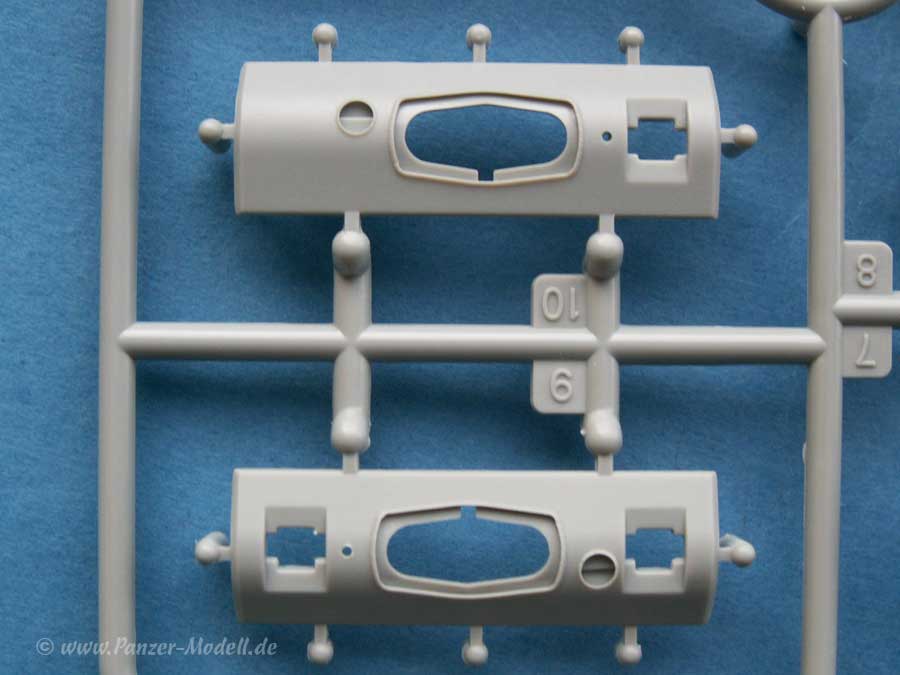 Überhaupt hat man bei diesem Bausatz einige Wahlmöglichkeiten. Zum einen kann man ihn mit der 5cm KwK L/42 oder der L/60 bauen - beide sind enthalten und aus Plastik mit Feldern und Zügen, die man bei diesem Kaliber aber kaum erkennen kann.
