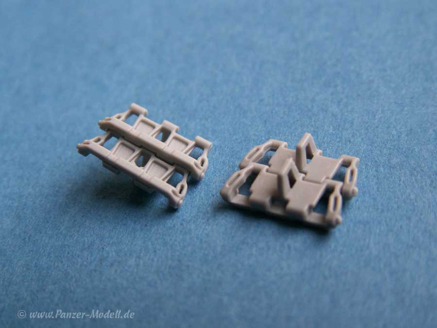 Die Qualität und Detailierung der Teile ist sehr gut, die Maßhaltigkeit ist stimmig und es gibt nahezu keine Auswerferstellen. Die Einzelgliedketten sind fantastisch, hier gibt es nichts nachzuarbeiten, die Führungszähne sind offen und der Zusammenbau ist simpel.