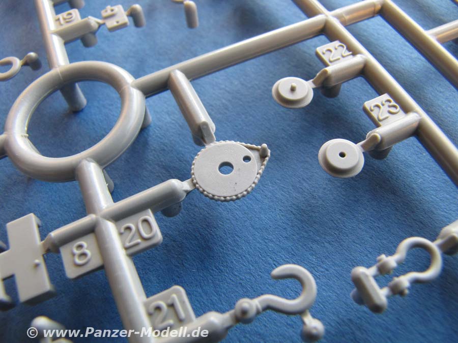 Wie von Dragon gewohnt bedient man sich auch hier an vielen Teilen der "Slide Mould" Technologie und die Detailierung und Ausformung der Teile ist sehr gut. Gerade an den Lauf- und Stützrollen wird dies wieder besonders deutlich, wo die Herstellerbeschriftungen fein und so eben erhaben aufgeprägt sind, dass es eine helle Freude ist.