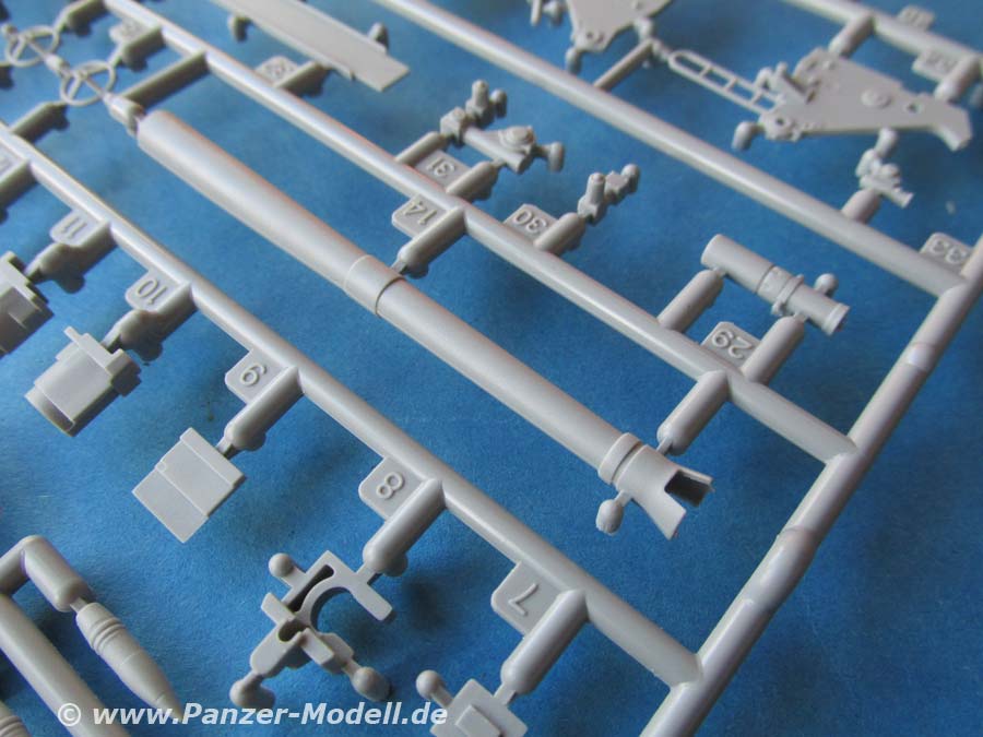 Diese ist hier enthalten und wird entsprechend in die passende Aufnahme gebaut. Die Detaillierung ist recht schön und das Haubitzenrohr in einem Stück aus Plastik gemacht.