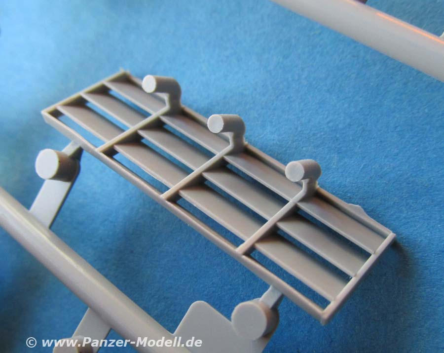 Die Aufbauteile des Kampfraums macht einen exzellenten Eindruck mit schönen dünnen Wänden und einer Menge Details wie Munhalterungen, Staubocen und Waffenhalterungen. Zusätzlich liegen auch noch einige passende Granaten in Plastik bei.