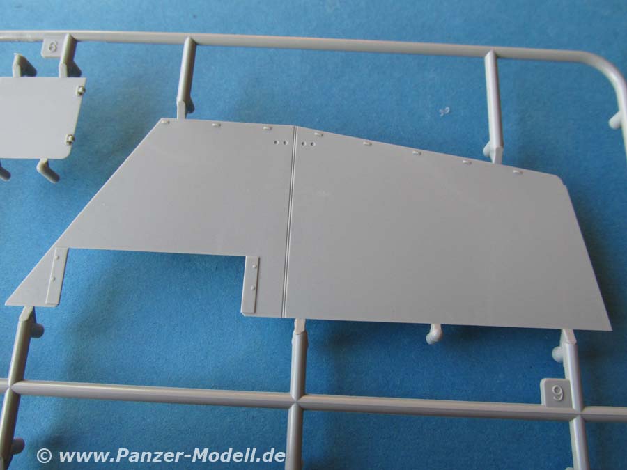 Der Aufbau gliedert sich in mehrere Teile und bietet mehrere schöne Details. Gerade die Bodenplatte im Kampfraum ist sehr schön detailiiert mit der Noppenstruktur und Handgriffen.