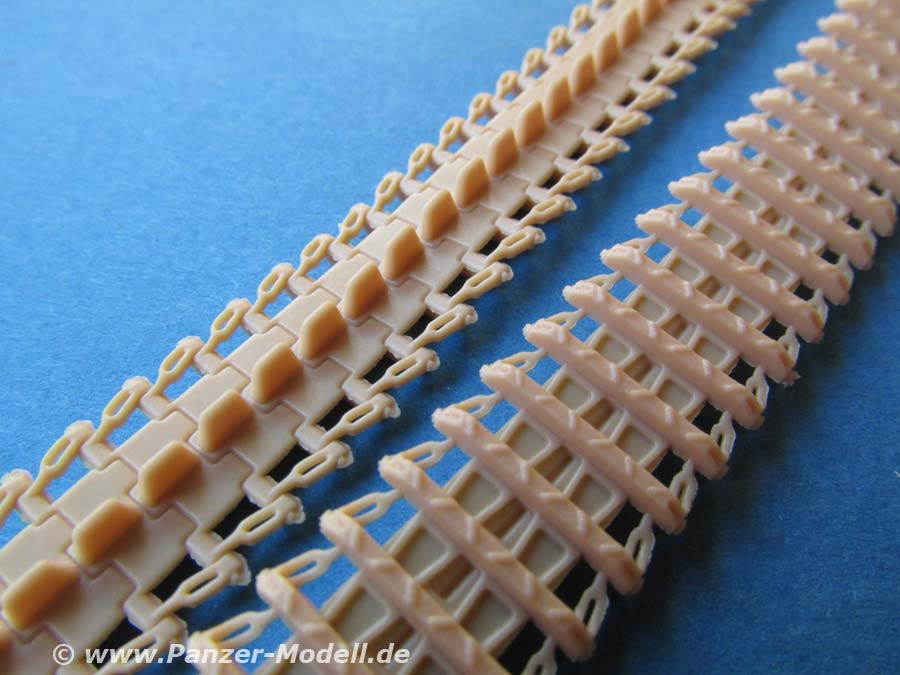 Die Ketten sind die typischen DS Ketten, die man mittlerweile von Dragon gewohnt ist. Von der Qualität her ganz ausgezeichnet und dank des Styrens auch ganz normal mit Plastikkleber verklebbar. Das Manko isit, dass ein Kettendurchhang damit leider schwer zu realisieren ist ...