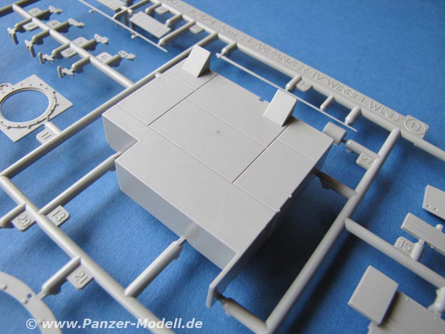 Wanne und Laufwerk sind bereits von den Panzer IV bekannt und mit den entsprechend guten und detailierten Teilen versehen.
