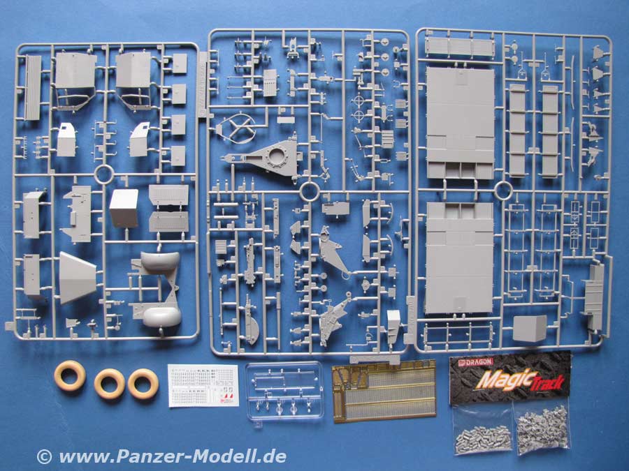 Im Bausatz enthalten sind über 580 Teile, Magic Tracks, Fotoätzteile, durchsichtige Plastikteile, DS-Vinylreifen und Decals.