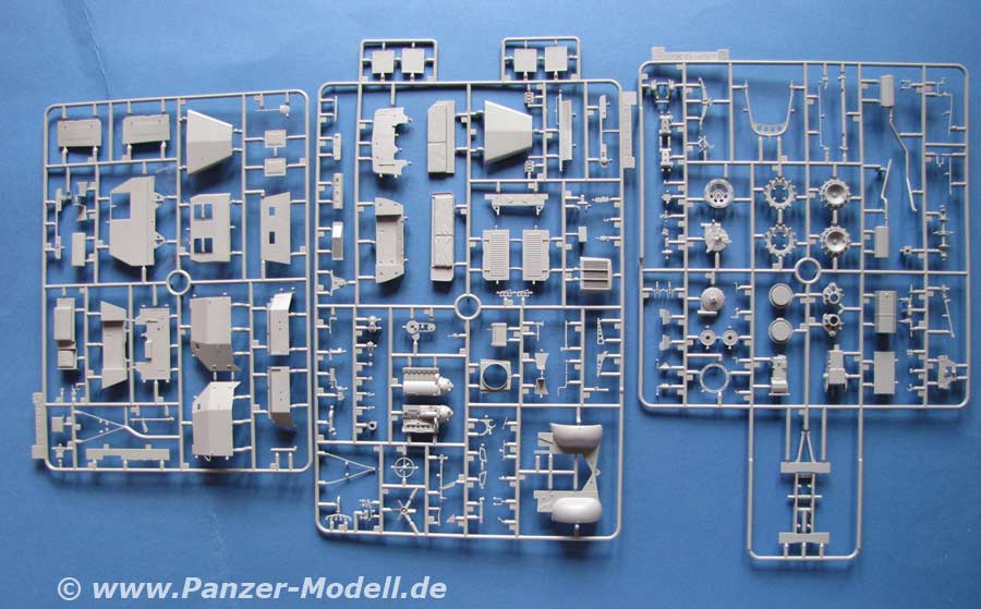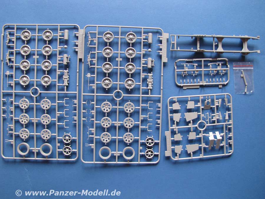 Der Großteil der Teile, insbesondere für das Chassis und Laufwerk sind bereits vom Vorgänger, das Sd.Kfz.7/1 bekannt und die Details sind wirklich exzellent. Sogar die PE Teile weisen in ihrer Gitterstruktur eine Dreidimensionalität auf!