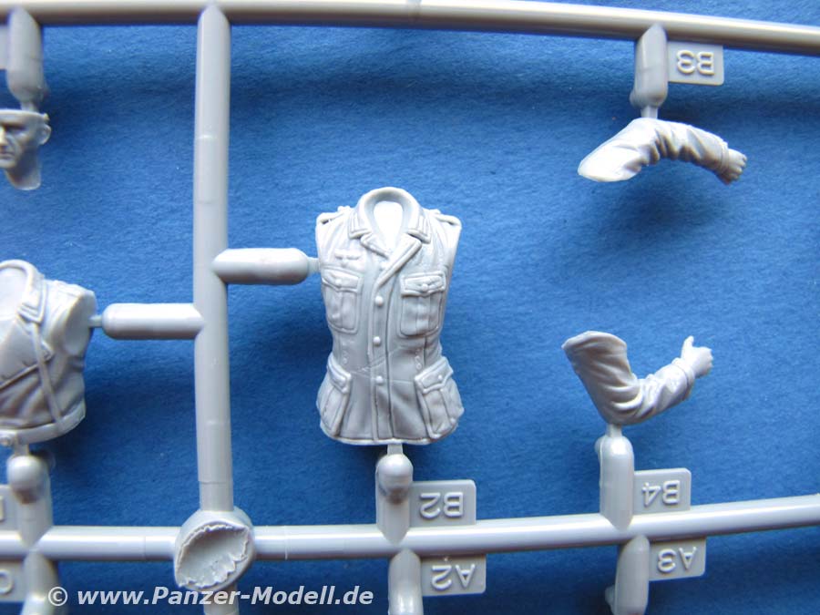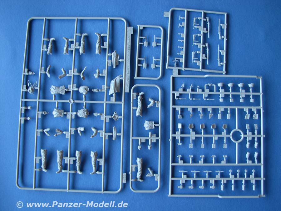 Der Bausatz enthält sehr schön gestaltete Teile für 4 Soldaten mit Uniformen und Ausrüstung der Zeit von 1940-41 wobei man sicher auch spätere Zeiträume damit abdecken kann.