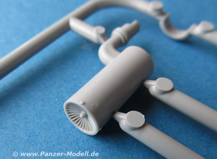 Geschützkragen und kanonenrohr machen ebenfalls einen guten Eindruck. Das Rohr ist zwar mehrteilig, aber nicht in den sonst üblichen Halbteilen, sondern nur in der Länge unterteilt mit separater Mündungsbremse - das sieht recht vielversprechend aus.