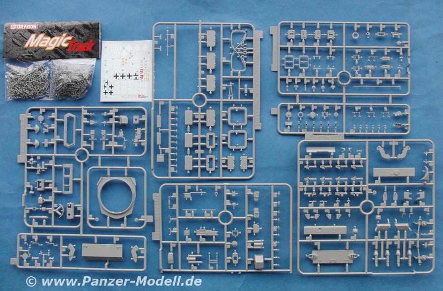 Im Bausatz enthalten sind über 680 Teile an 22 mehr oder weniger großen Spritzlingen, Klarsichtteile, Magic Tracks, Unterwanne, Turm, vorgebogene Metallteile und ein Decalbogen.
