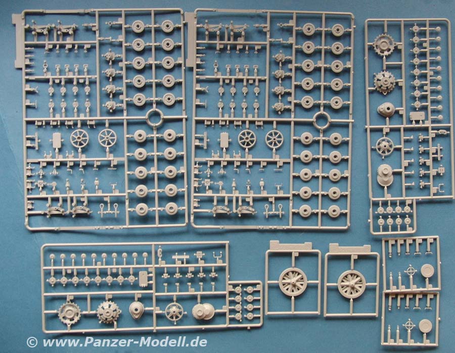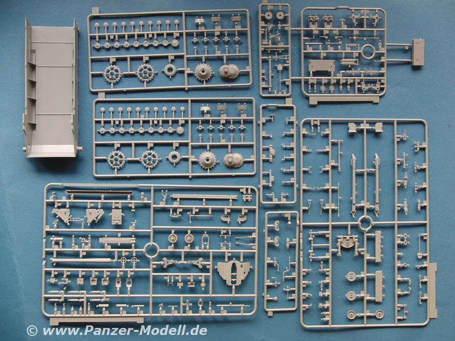 Im Bausatz enthalten sind über 750 Teile an 21 mehr oder weniger großen Spritzlingen, die Unterwanne, Fotoätzteile und ein Decalbogen.
