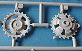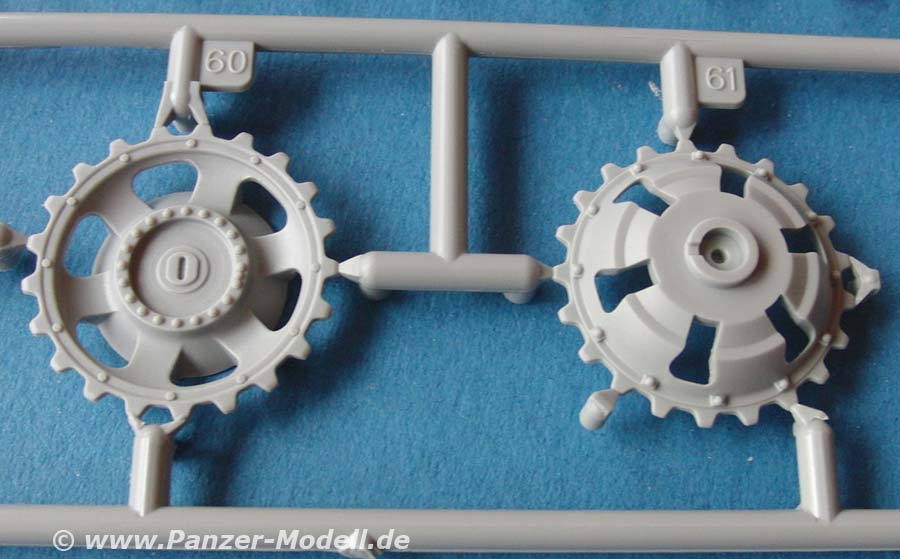 Basis dieses Fahrzeugs ist ja der Geschützwagen III/IV wie er bei Hummel und Nashorn zum Einsatz kam und tatsächlich kommen einem diverse Teile am Fahrzeug bekannt vor, wie etwa der vordere Aufbau mit Fahrerfront. Der Bausatz an sich ist eine komplette Neuentwicklung, die auf einige bekannte Teile zurückgreift, wie etwa das hervorragende Laufwerk der Panzer IV Baureihe und auch die dementsprechende Magic Track kette mit den einzeln versäuberten Kettengliedern - schön sauber verpackt in zwei Tütchen nach links und rechts getrennt.