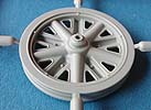 Die Räder undHolme der Feldhaubitze werden separat am Fahrzeugheck mitgeführt und können wahlweise auch wieder an die Feldhaubitze angebaut werden um diese gezogen darzustellen.