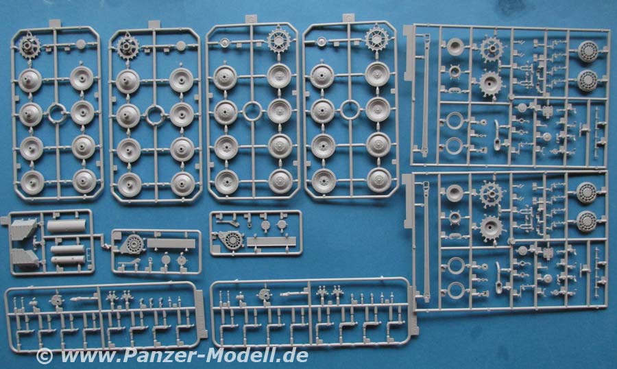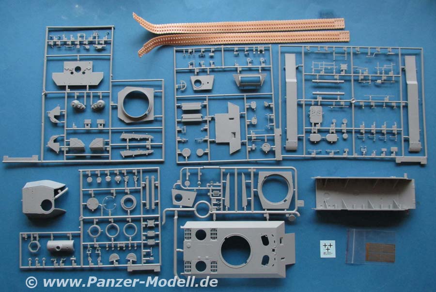 Insgesamt sind die Teile wieder recht dragontypisch in guter Qualität sauber gespritzt und mit feinen Details versehen. Die enthaltenen Spritzlinge basieren in großen Teilen auf vorherigen bereits auf dem Markt erhältlichen Panther Bausätzen plus einigen sehr speziellen Teilen nur für diese Versuchsserie.