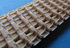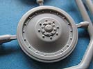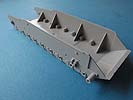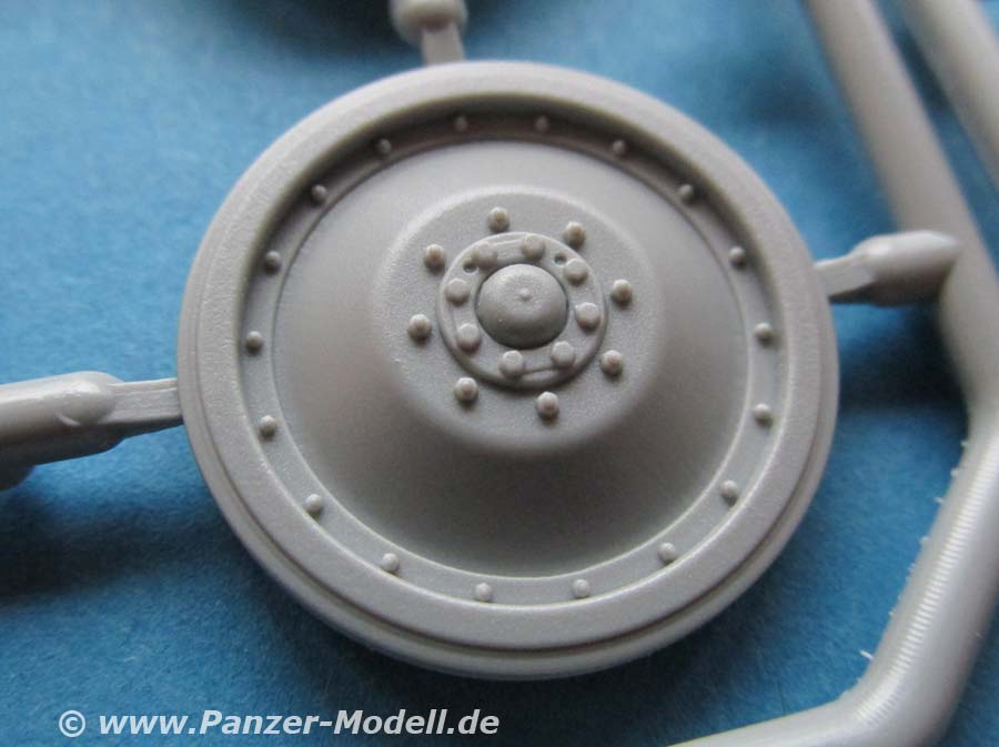 Die Unterwanne ist wie gewohnt einteilig und wird mit den entsprechenden Anbauteilen des Laufwerks versehen. Die Schwingarme werden einzeln eingesteckt und müssen geklebt werden - mit ein wenig Eigenarbeit kann man diese aber in beliebigen Positionen einbringen um das Fahrzeug im unebenen Gelände darzustellen. Die Laufrollen sind vom frühen und korrekten Typ mit 18 Bolzen. Ganz neu und einzigartig ist das Aussehen des Treibrads, das von Dragon hier korrekt wiedergegeben wird.