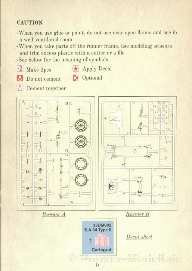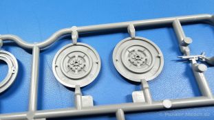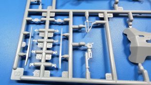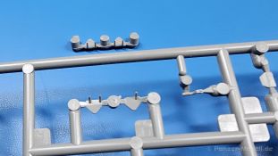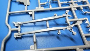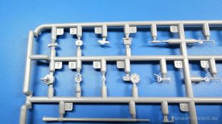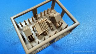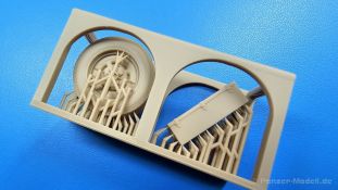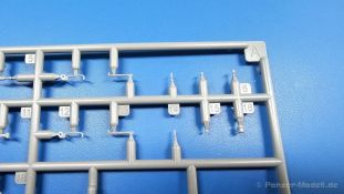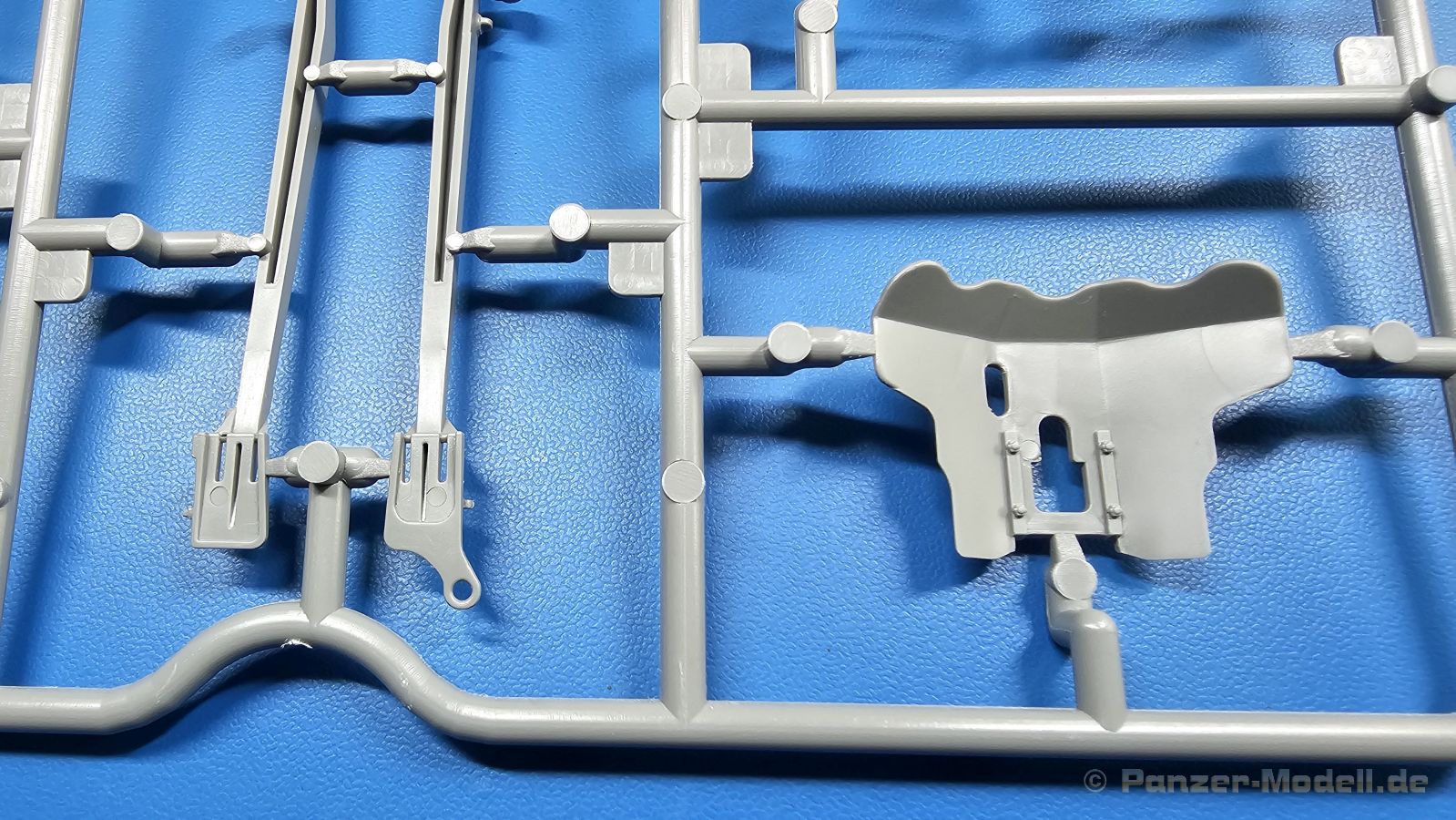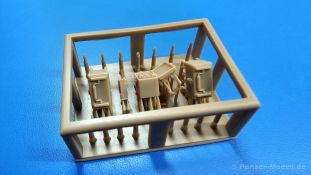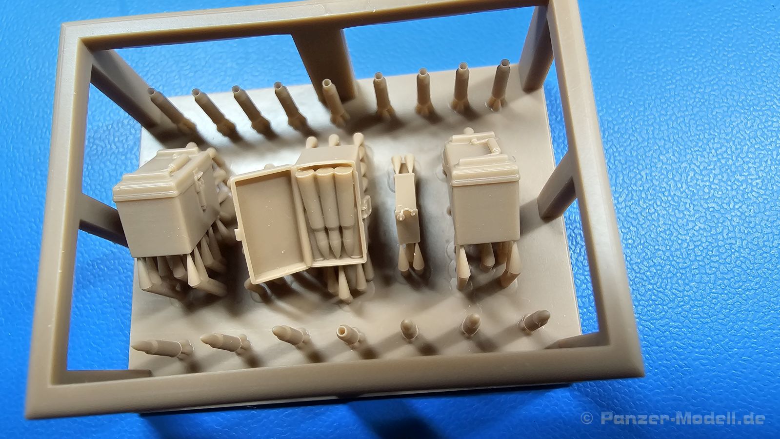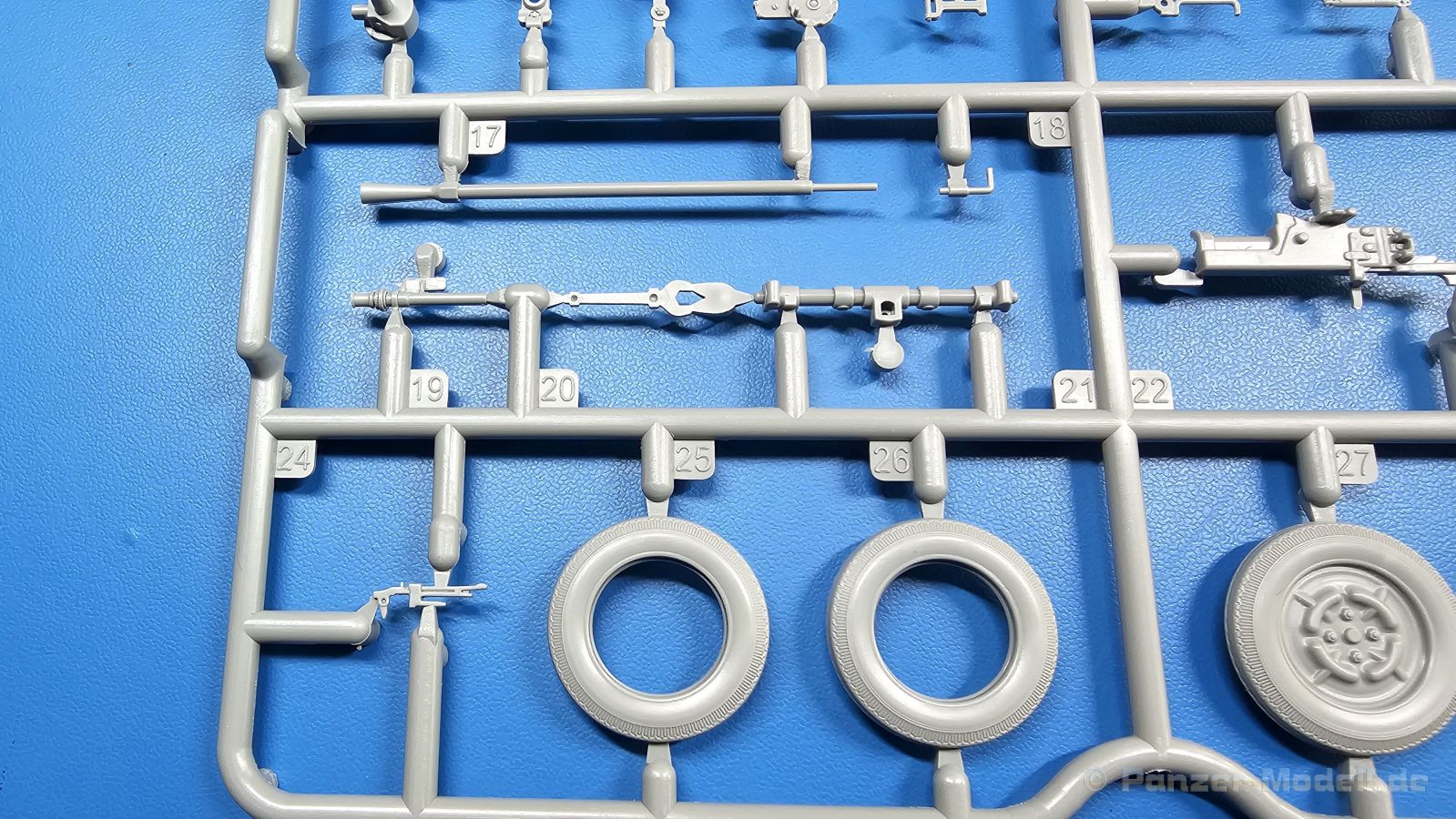 Die gezogene 25mm PaK S.A. 34 wurde in den späten 1920-ern von der französischen Firma Hotchkiss entwickelt. Sie kam ab 1934 als Panzerabwehrwaffe zur französischen Armee und war in der Lage mit panzerbrechender Munition viele Panzer der damaligen Zeit bis auf 1.000 Meter Entfernung zu bekämpfen. Eine trainierte Besatzung konnte bis zu 15 Schuss pro Minute abgeben. Zu Beginn des Krieges standen ca. 4.500 dieser Pak Frankreich zur Verfügung, aber schnell musste man feststellen, dass man damit zwar leichte Panzerwagen bekämpfen konnte, aber sie nicht gegen die stärker gepanzerten Panzerkampfwagen III und IV ankamen. Ein Teil wurde auch dem britischen Expeditionskorps überlassen, da diesen nicht genügend Panzerabwehrwaffen zur Verfügung standen. Nach dem Fall Frankreichs fielen viele S.A. 34 den Deutschen in die Hände, die die Pak unter Bezeichnung 2,5 cm PaK 112(f) in ihr Arsenal einreihten. Die Kanone selbst fand auch Verwendung in Panzerwagen wie dem Panhard 178. Der Bausatz: Dynamo Models kennt man eher als Resin Figuren- und Zubehör-Set Hersteller, der letztes Jahr den Sprung zu den Plastikbausätzen wagte. Sein zweiter Plastikbausatz stellt ein Objekt aus seinem Heimatland dar. Die französische 25mm Pak ist ein eher seltenes Modell, passt aber grad in dieser Zeit auch gut zu den französischen Fahrzeugen z.B. dem Laffly V15 von ICM. Der Bausatz erscheint gleich 3x – als normaler Plastikbausatz, als Premium- und als Deluxe Edition. Heute liegt mir die Premium Edition vor. Im 245 x 175 x 35 mm großen Karton befinden sich zwei hellgraue Spritzlinge, ein gedrehtes Metallkanonenrohr plus Mündungsfeuerdämpfer, drei 3D-Druckbasen, ein kleiner Naßschiebebilderbogen, eine gebundene Bauanleitung und ein Zusatzblatt. Mit den zwei Spritzgussrahmen kann man eine vollständige PaK bauen. Dies sind dann wohl die Teile für Standard Bausatz. Die Spritzgussteile machen einen guten Eindruck. Details treten deutlich hervor. Teile wie das Kanonenrohr und Zielfernrohr sind im Slide Mold Verfahren hergestellt. Auswerfer sind meist auf Angüsse neben die Teile gesetzt. Es gibt nur ganz wenige, die sich auf Teilen befinden. Sie sind sehr flach und an Stellen, die schwer oder nicht einzusehen sind. An wenigen Teilen ist etwas Fischhaut zu finden. Zwischen Spritzrahmen und Teilen ist genügend Platz zum Ansetzen des Seitenschneiders. So klein wie das Modell wird, bietet es doch allerlei Optionen wie Fahr- oder Gefechtsstellung, offener oder geschlossener Verschluss. Schauen wir mal, was es alles so gibt. An der Starrachse wird ein feststehender U-förmiger, beidseitig detaillierter Schild befestigt. Dieser erhält vorn noch eine Kanonenzurrung, die in Gefechtsstellung nach unten geklappt und in Fahrstellung nach oben geklappt die Kanone in erhöhter Stellung festzurrt. In Fahrstellung muss man dazu den Bolzen aus der Zurrung schneiden, weil dort dann der Kanonenschlitten hineinpassen soll. Die Räder aus Plastik sind zweiteilig ausgeführt, zeigen schöne Details und ein tolles Reifenprofil. Da es sich aber um den Premiumbausatz handelt, stehen auch 3D-gedruckte Räder zur Verfügung, die die Plastikräder übertrumpfen. Das Lager für die Schwenklafette wird von hinten an die Achse geklebt. Die Holme der Spreizlafette können in Schlepp- oder Gefechtsstellung gebaut werden. Je nach Wahl der Stellung gibt es andere Teile der Stützschaufeln. (Zu beachten: Das Teil B13 (Stützschaufel) ist nicht vollständig ausgeformt, daher ist dieses Teil noch einmal dabei, separat und vollständig.) In der Schleppstellung wird der hintere Stift der Holmverriegelung (A18) abgeschnitten, der bei Gefechtsstellung zu sehen ist. Es ist ein großes Schraubenschlüssel und einige, auch sehr kleine, Teile an den Holmen anzubringen. Die Holme werden ohne Klebstoff auf die Schwenkachse gesteckt. Eine Spreizstange ist in Fahrstellung am rechten Holm befestigt, in Gefechtsstellung hält sie die beiden Holme auseinander. Damit hat man das Fahrgestell bereits fertig. Das Kanonengehäuse ist zweiteilig ausgeführt, das Bodenstück hinten geöffnet, so dass man bei geöffnetem Verschluss ins Patronenlager sehen kann. Auch hier muss man beachten, dass je nach Verschlussstellung andere Teile zur Anwendung kommen, so dass der Öffnerhebel des Verschlusses die jeweils richtige Stellung anzeigt. Ein Feature, das andere Hersteller ganz gerne mal ignorieren. Entsprechend kann man den Verschluss nach unten (offen) oder nach oben (geschlossen) geschoben einbauen. Der Rohrrückholer ist eine Spiralfeder, die selbst in Plastik noch gut aussieht. Interessanterweise wird für das Zielfernrohr ein kleiner Extraschutzschild am linken Kanonenlager angebracht. Das Slide Mold gefertigte Zielfernrohr ist am Okular ausgehöhlt, so dass eine gewisse Tiefe erzeugt wird. Links am Kanonenschlitten wird die Seitenrichtkurbel angebracht, dahinter ein kleiner Abweiser, um den Richtschützen vor dem Kanonenrücklauf zu schützen. Die Höhenrichtkurbel setzt am linken Höhenrichtlager an. Hier ist ein feines Zahnsegment für die Höhenrichtung zu sehen. Linkes und rechtes Höhenlager nehmen die Zapfen des Kanonenschlittens auf. Letztere werden nicht geklebt, damit die Kanone in der Höhe beweglich bleibt. Am Boden ergeben die beiden Hälften den Schwenkzapfen, der dann ohne Klebstoff in das Schwenklager an der Radachse eingeführt wird. Das Schutzschild setzt an die beiden Höhenrichtlager an. Das Kanonenrohr selbst ist Slide Mold gespritzt mit schönem Mündungsfeuerdämpfer. In der Premium Edition liegt zusätzlich ein gedrehtes Aluminiumrohr mit separatem Mündungsfeuerdämpfer bei. Weiterhin gibt es einige 3D-gedruckte Teile. Da wäre die Rohrwischerstange, die an der Innenseite des linken Spreizholmes angebracht. Ein weiteres Teil ist eine Halterung unbekannter Natur, die am rechten Höhenrichtlager angebracht wird. Es gibt drei Patronenkästen, zwei geschlossen, einer offen mit drei oben sichtbaren Patronen. Dazu kommt eine ganze Menge separat