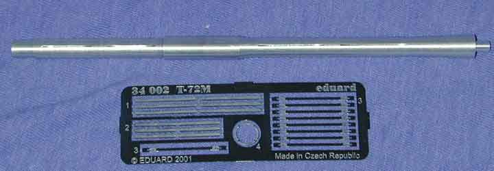 Das zweite Rohr, mit Nummer 34002, in dieser Reihe ist ein Rohr für den T-72 von Tamiya. Das Rohr ist fein detailliert, und beinhaltet sogar einen Satz PE Teile mit Rohrringen und Längsstreben. Insgesamt ein guter Eindruck!