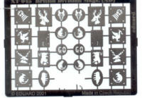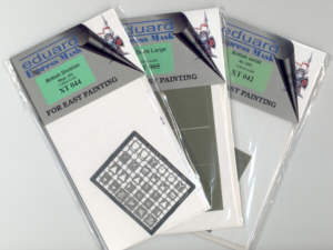 Nach all den Ätzteilen aus dem Hause Eduard, wollen wir Ihnen hier einmal die hervorragenden Spritzschablonen aus der Expressmask Reihe vorstellen. Irreführenderweise verbergen sich hinter den Expressmask sowohl fotogeätzte Schablonen, als auch Schablonen aus einer hauchdünnen leichtklebenden Folie. Die Qualität beider Sorten ist exzellent und braucht den Vergleich mit konkurrierenden Produkten nicht zu scheuen. Fotogeätzte Schablonen finden hierbei Verwendung, wenn es um komplexe Symbole, wie Schriftzüge, taktische Zeichen oder Divisionsabzeichen geht. Die eigentliche Maskierfolie wird hingegen für "Massensymbole" wie Hintergründe oder einfachere Formen wie Balkenkreuze, Sterne, Buchstaben usw. eingesetzt.