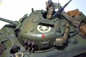 Schwieriger gestaltet sich hier schon das Aufbringen der Divisionsabzeichen ("F"). Hier werden in bis zu vier Arbeitsgängen erst der Rahmen (Masking Film), die Innenfläche (Masking Film) und schließlich das eigentliche Abzeichen (Ätzschablone) aufgebracht. Während des Arbeitsvorganges bekommt man zwar jede Menge Adrenalin, aber wenn man die Abdeckungen entfernt, dann wird man mit erstklassigen Abzeichen belohnt, die man so als Abzehbild eh nicht bekommt!