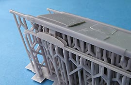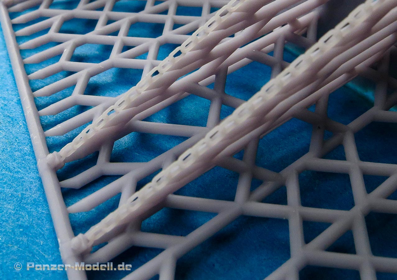 Der Druck der Teile ist gut mit feinen Details und nur minimalsten Drucklinien, die mit dem bloßen Auge nicht sichtbar sind. Besonders fein sind die Ketten, die die Tragen halten - diese sind sehr fein gedruckt, sind aber auch extrem tricky zu versäubern, da sehr fein und fragil - durch Verzug beim Abtrennen können diese leicht brechen oder beschädigt werden.