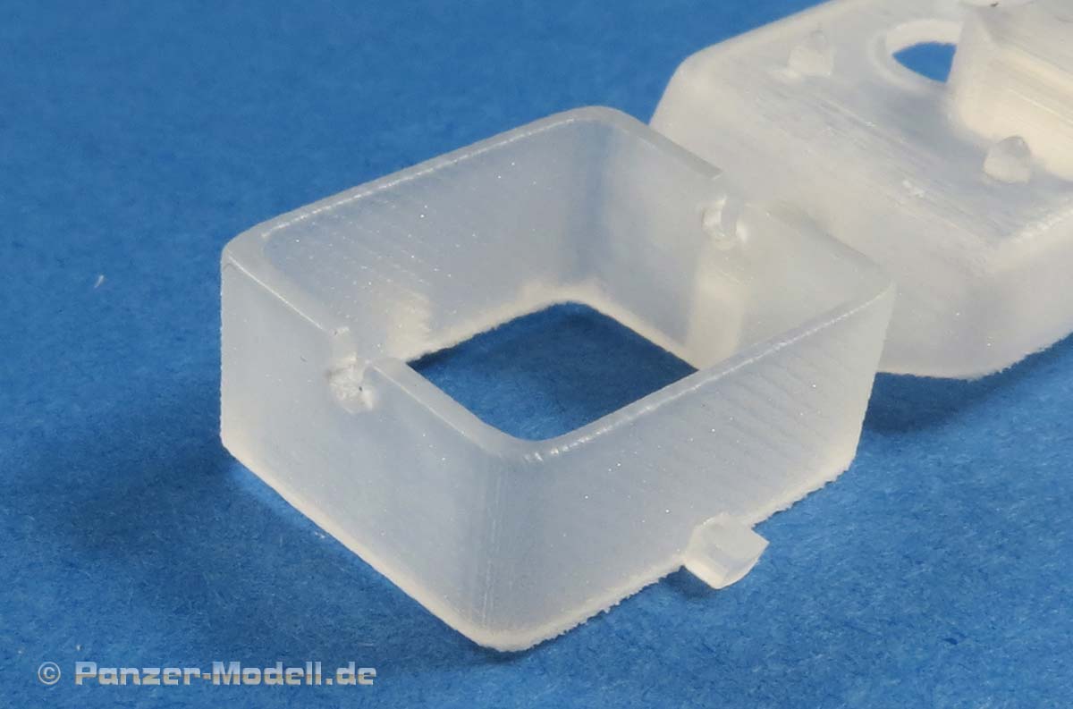 In der Blisterpackung finden wir nun also 3 Teile direkt aus dem 3D Drucker, also kein Resinabguss - das hat den Vorteil, dass die Teile ohne weitere Arbeit und Material an den Endkunden gehen und so auch sehr leicht verarbetbar sind, da sie nicht mehr versäubert werden müssen und nur kurz voneinenander getrennt. Es gibt keine Bau- und Bemalungsanleitung, was aber in diesem Fall nicht schlimm ist, denn die Anbringung dürfte ziemlich klar sein. Ein sehr schönes Set mit dem man den sonst etwas eintönigen R35 zu einer besonderen Version aufrüsten kann. Leider nicht ganz billig, aber das hat der direkte 3D Druck derzeit leider noch so an sich.