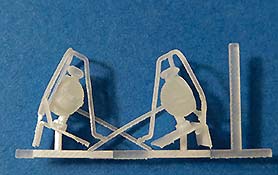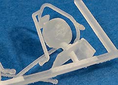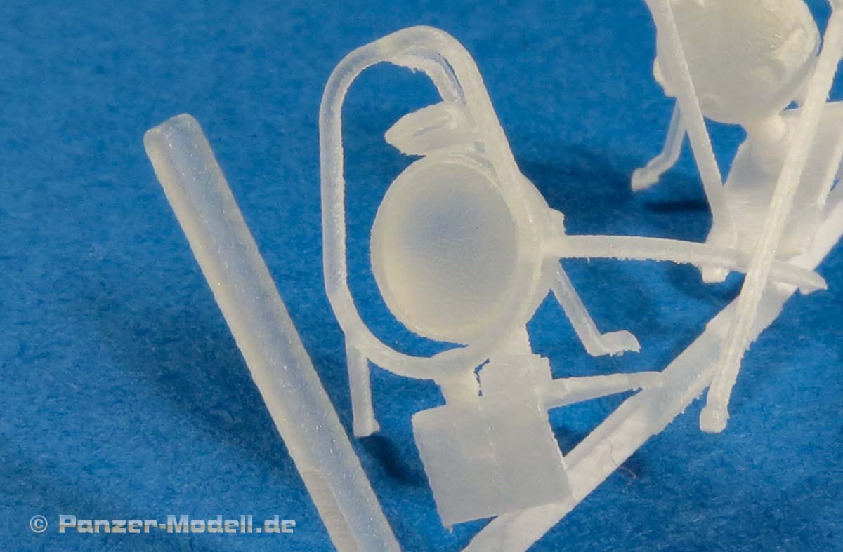 In der Blisterpackung finden wir 2 Scheinwerfer für den Bundeswehr SPz Marder in 1:35 direkt aus dem 3D Drucker in einem Druckgestell.Wie gerade schon gesagt, kennt man es sonst nur so, dass die Master als 3D Druck gemacht werden, dann aber über eine Silikonform in Resin abgegossen werden. Auf diesem Wege des direkten Drucks hat der Hersteller ganz andere Möglichkeiten und kann feine und detaillierte Werkstücke produzieren.