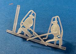 Die zwei Scheinwerfer sind, wie bei der Bw gewohnt mit obenaufliegendem Tarnscheinwerfer. Der Hauptclou, warum dieses Set gerade als 3D Druck hier auftrumpft, ist dass die sehr filigranen Schutzstreben gleich mitgedruckt sind.